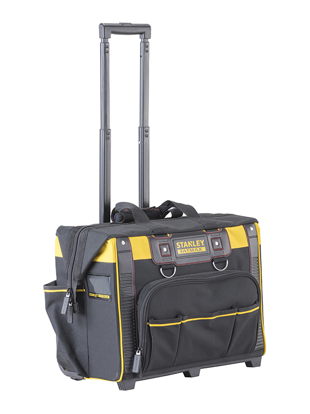 In nylon 600×600 Den. Ampia capacità contenitiva, può alloggiare utensili elettrici, utensili manuali ed accessori. Maniglia telescopica uso intenso. Ruote per facile mobilità. Tasche multiple interne ed esterne per la massima organizzazione dello spazio. Divisori interni removibili. Tasche chiuse per gli oggetti personali. Dimensioni: 50x36x25 cm.