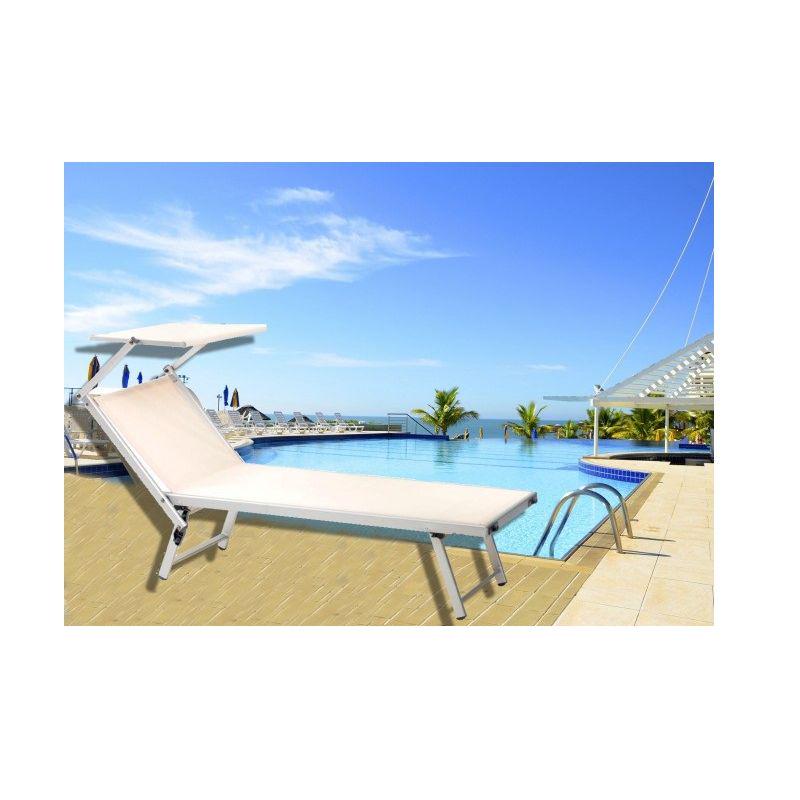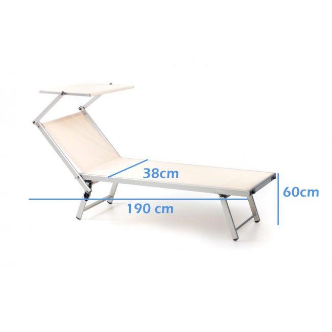 Goditi in tranquillita’ le tue vacanze estive e distenditi comodamente grazie al lettino Freak, caratterizzato da una struttura in alluminio e da un resistente telo in textilene di colore ecru’. E’ regolabile in 2 posizioni mediante la cordicella e presenta un innovativo sistema di apertura gambe salvadita. Nelle ore calde proteggiti dai dannosi raggi UV grazie al tettuccio parasole orientabile. Dimensioni: 186 x 67 x 40 cm. SALMAR ART. M0604-21