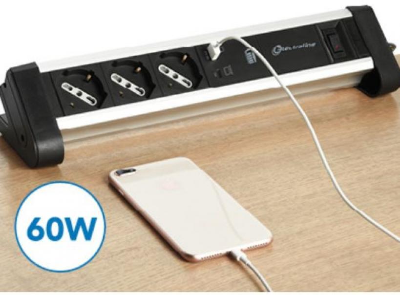 Per una work station pulita ed efficiente, Electraline propone la nuova e pratica multipresa con caricatore di nuova generazione Power Delivery, capace di erogare fino a 60W per ricarica di computer e smarphone simultaneamente.