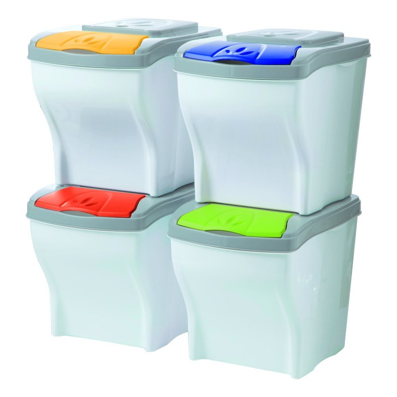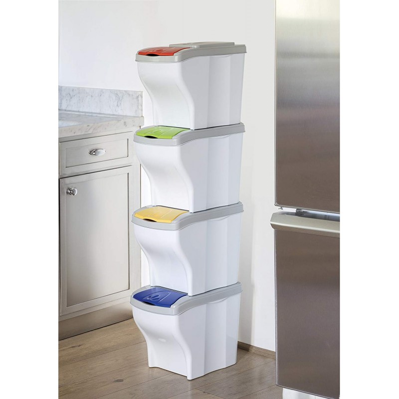 Realizzata interamente in plastica di altissima qualità, con dimensioni compatte che permettono di posizionare e comporre i 4 bidoni come meglio si preferisce ad es. 2 sopra e 2 sotto, in colonna, in fila o come meglio si preferisce, soddisfacendo qualsiasi tipo di esigenza di spazio.